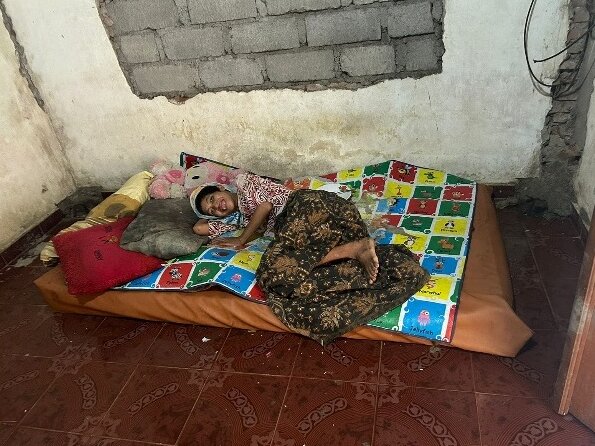 Dank der NEXUBA-Unterstützung konnte der Raum menschenwürdig hergerichtet und sichergestellt werden, Sodass Made Reni jetzt in hygienischeren Verhältnissen liegen kann. Die NEXUBA-Besuche wirken auf Mutter wie Tochter belebend und geben ihnen Mut, mit den schwierigen Umständen fertig zu werden. Beim letzten Besuch zeigte sich, dass Made Reni auch sitzen kann… und lächeln.