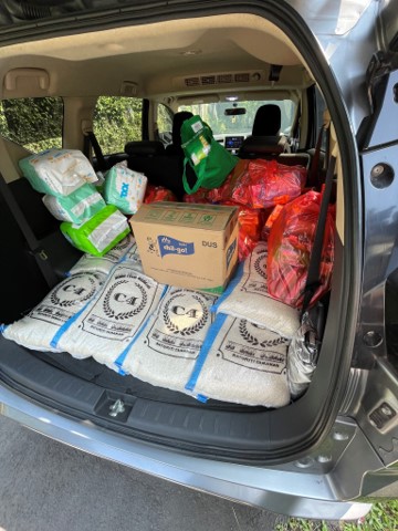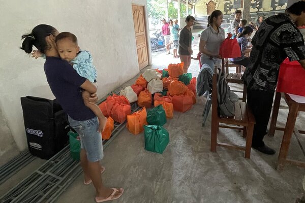 Verteilung von Lebensmitteln an hilfsbedürftige Dorfbewohner in der Region Pipid.